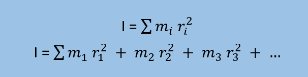 القصور الدوراني لمجموعة من الأجسام التي تتحرك حركة دورانية هو المجموع الجبري لحاصل ضرب كتلة كل جسم في مربع نصف قطر الدائرة، أي أن: