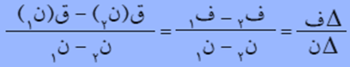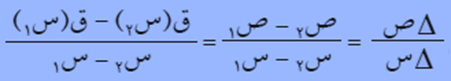 ثم بالتعويض المباشر عن قيم س1 وس2 وقيم ق(س1) وق(س2) المناظرة لها في قانون حساب متوسط التغير، حيث: