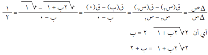 وكان متوسط التغير للاقتران ق(س) عندما تتغير س من صفر إلى ب يساوي 1/2. احسب قيمة ب، حيث ب أكبر من صفر.