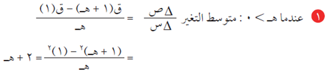 لبيان أن متوسط تغير الاقتران ق(س) عندما تتغير س من 1 إلى 1+ ه هو:
