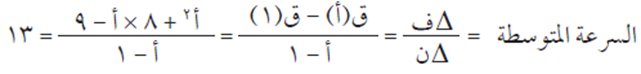 - السرعة المتوسطة في الفترة ]1، أ[ تساوي 13 متر/ثانية، جد قيمة أ.