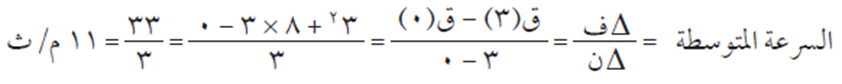 من المعنى الفيزيائي لمتوسط التغير، فإن السرعة المتوسطة الفترة [١، ٣] تساوي: