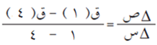 - متوسط التغير في الاقتران ق(س) عندما تتغير س من 4 إلى 1.