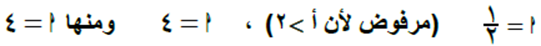 بالتبسيط نحصل على: أ 2 – 5 أ + 4 = صفر، وبحل المعادلة نحصل على قيمة أ = 4.