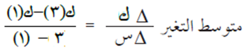ميل المستقيم ل = متوسط التغير في الاقتران ق (س) عندما تتغير س من س1 = 1 إلى س2 = 3.