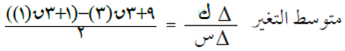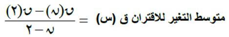 - بالتعويض المباشر عن قيم س1 وس2 وقيم ق(س1) وق(س2) المناظرة لها في قانون حساب متوسط التغير: