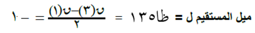 بما أن ميل المستقيم = ظا ي = 1ـ، إذن ي = 45 درجة. (لأن ظا 45 = 1).
