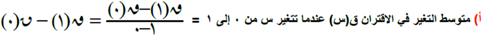 - متوسط التغير في ق(س) عندما تتغير س من – 1 إلى 2.