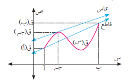 إذن تحققت شروط نظرية القيمة المتوسطة على الاقتران ق(س) في الفترة [-2، 1]، وبالتالي قإنه يوجد على الأقل عدد جـ ϶ ]-2 ، 1[، بحيث يكون: