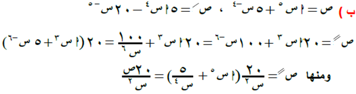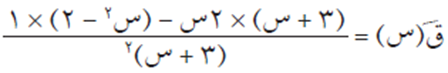 - ق/(س) = (س3 -1) × 1 + 3 س2 × (12 + س) = (س3 -1) + 36 س2 + 3 س3 = 4 س3 + 36 س – 1، ومنها ق/(3) = 4 × 27 + 36 × 9 – 1 = 431.