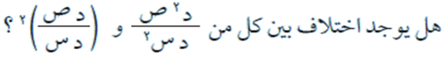 نعم هناك فرق بين المقدارين، لأن الأول هو المشتقة الثانية للاقتران ص أما الثاني فهو مربع المشتقة الأولى للاقتران ص.