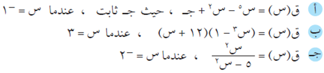 جد ق/(س) في كل مما يأتي عند قيم س إزاء كلّ منها: