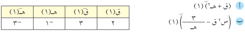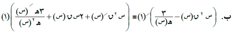 أ. (ق + ه2)/(س) = ق/(س) + (ه(س) × ه(س))/ = ق/(س) + (ه(س) × ه/(س) + ه/(س) × ه(س)) = ق/(س) + 2 ه(س) × ه/(س) ومنها يكون = ق/(1) + 2 ه(1) × ه/(1) = 3 + 2 × -1 × -3 = 9.