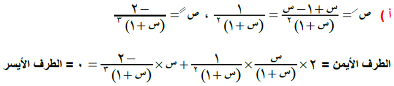 ق/(س) = ((س2+1)×1 – (س ×2س))/(س2+1)2 وبالتعويض عن س = 1 ينتج أن ق/(1) = صفر.