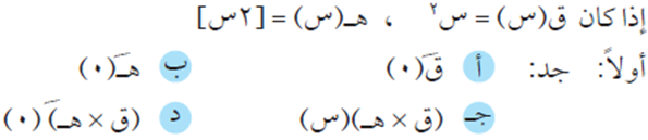 - بما أن ق(س) = س2، إذن ق/(س) = 2 س ومنها ق/(0) = صفر.