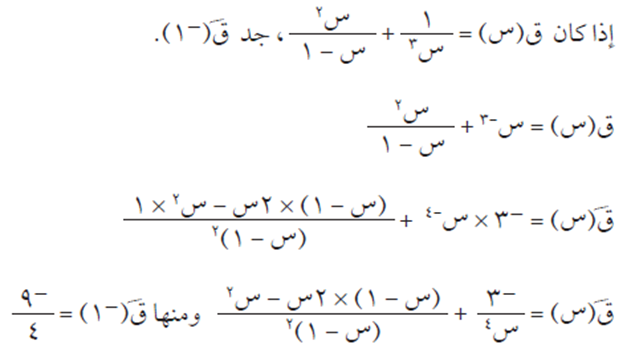 مثلاً: إذا كان ق(س) = 5 س فإن ق/(س) = 5 س1 – 1 = 5 س صفر = 5 × 1 = 5