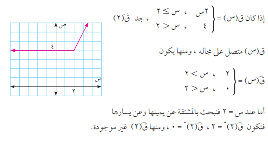 في جميع الأمثلة السابقة كان الاقتران المطلوب إيجاد المشتقة له اقتران متصل، أي أنه معرّف على جميع قيم س التي تنتمي لمجموعة للأعداد الحقيقية ح.