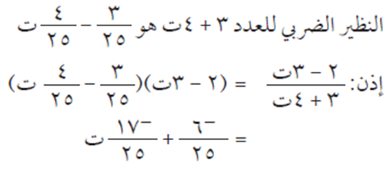 | ع | = | ٣ – ٤ ت | = جذر (٣ ٢ + ٤ ٢) = ٥