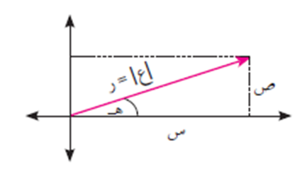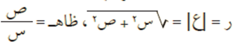 ويكون طول المتجه = ر ويساوي مقياس العدد المركب ع = س + ص ت حيث ر = |ع| = جذر (س٢ + ص٢ ).
