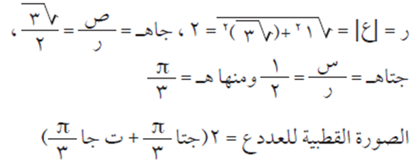الصورة القطبية للعدد المركب ع = س + ص ت، ع ≠ صقر هي: ع = ر (جتا ه + ت جا ه)، حيث: