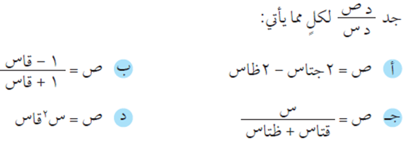 إذا كانت ق(س) = ظا س، فإن: ق/(س) = قا2 س.