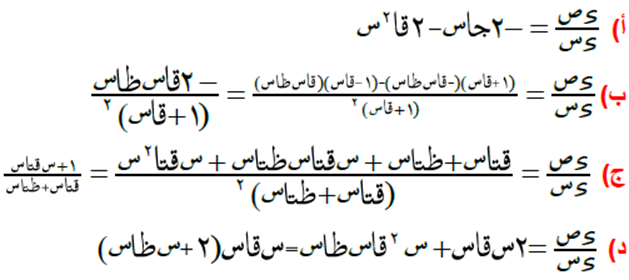ق/(س) = (جتاس جتاس – جاس × – جاس) / (جتاس)2 = ((جتاس)2 + (جاس)2) / (جتاس)2 = 1/ (جتاس)2 = قا2س.