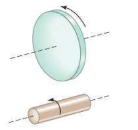 لتوضيح مفهوم النتيجة التي تم التوصل إليها حول علاقة التسارع الزاوي بالقصور الدوراني ومحصلة العزوم المؤثرة على جسم، يمكن تصور الفرق بين حركة الجسمين المبينين بالشكل التالي:
