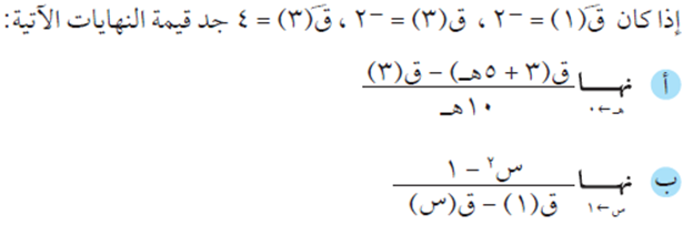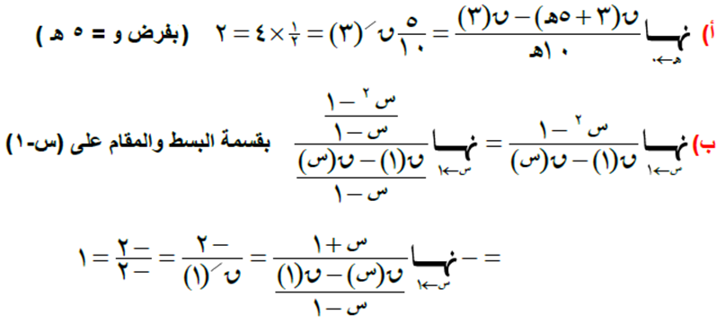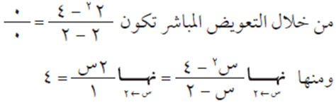 وعندما س تؤول إلى 1 فإن ع س تؤول إلى 2، وبالتعويض في المطلوب إيجاده، فتكون النهاية المطلوب إيجادها هي: