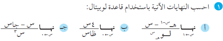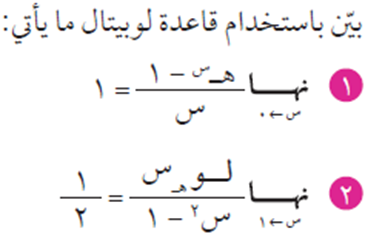 حلول تمارين الكتاب على درس قاعدة لوبيتال ومشتقة الاقتران الأسي واللوغاريتمي #