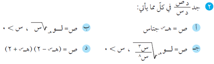 إذا كان ق(س) = لـــــو ه س، س > صفر ، فإن ق/(س) = ١ / س.