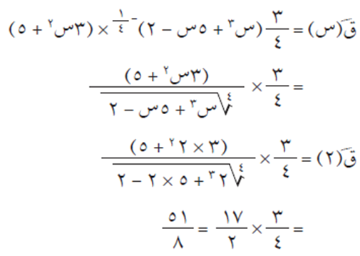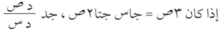 نشتق طرفي المعادلة اشتقاق ضمني بالنسبة إلى س، مع تطبيق كل قواعد الاشتقاق بما فيها قاعدة السلسلة حيثما يلزم تطبيقها، وذلك كما يلي: